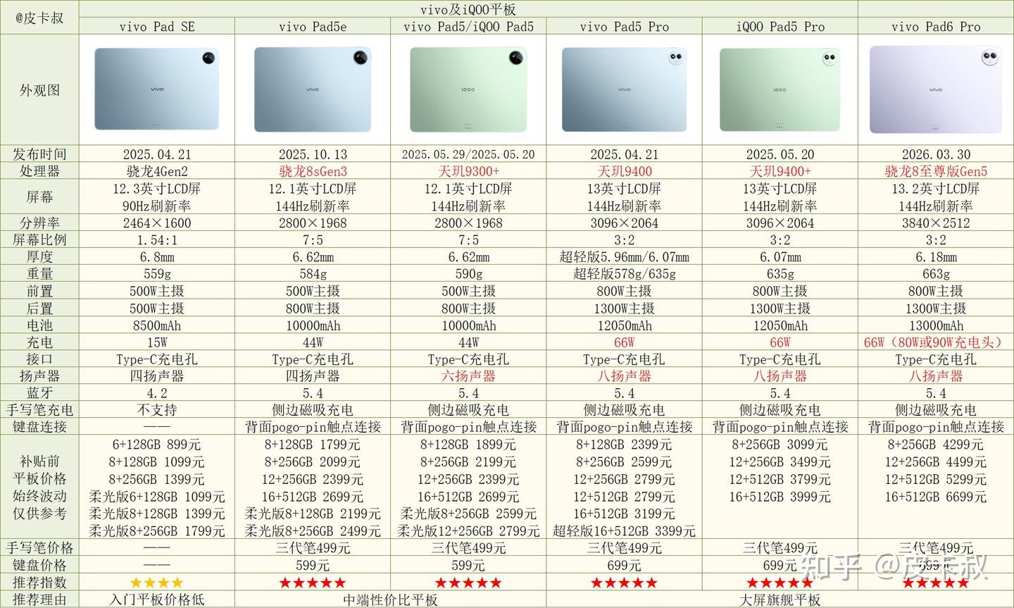 注重性价比可以考虑vivo Pad5,完全够用。iQOOPad5是vivoPad3的小升级款。vivo Pad5和iQOO Pad5配置基本一样。