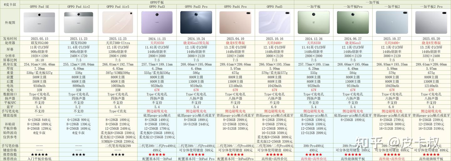 OPPO平板目前在售的主要有以下几款平板。一加平板基本上都是OPPO的套娃机型。