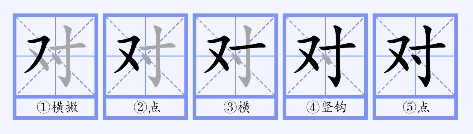中国最早的词典《尔雅》说:“对,遂也。”意思是顺着心意就说对,也就是不错的意思。清代段玉裁在《说文解字注》中的解释是:“对,答问也。”意思是回答、应答。古代科举考试的一种文体叫对、对策、对诏或奏对,是皇帝就有关政事、经义等方面的问题提出策问,应试者做出回答。
