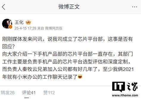 2025年4月15日,新浪科技报道称,小米内部宣布在手机部产品部组织架构下成立芯片平台部,任命秦牧云担任芯片平台部负责人,向产品部总经理李俊汇报。对于这一说法,小米集团公关部总经理王化回应称:手机产品部的芯片平台部一直存在,其部门工作主要是负责手机产品的芯片平台选型评估和深度定制,秦牧云早在 2021 年就与他在小米办公平台存在对话记录。 [1156]