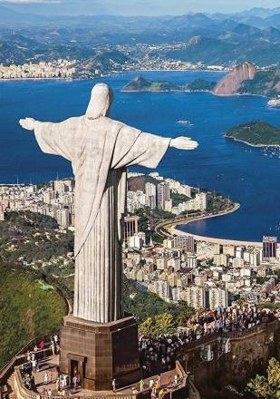 耶稣山 | 耶稣山(科尔多瓦山),高710米,位于里约市蒂茹卡国家公园内。山顶塑有一座两臂展开、形同十字架的耶稣像,故又名耶稣山。巨大的耶稣塑像在全市的每个角落均可看到,是里约的象征之一。该塑像建于1931年,高30米(相当于13层楼高,加上底座高度为38米),重1145吨。仅其头部就高3.75米、重30吨;左右两手手指顶端之间距离为28米;两臂面积约38平方米,重114吨;塑像基座面积为100平方米。它面向着大西洋,张开双臂,表情庄严肃穆,从远处望去,就仿佛一个扩大的十字架。在教徒们看来,这座耶稣的巨型雕像,正是为普天下劳苦大众而献身的“救世主”的化身。 | |
