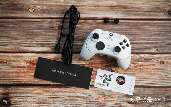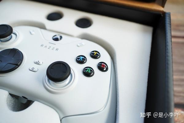 打开盒子可以看到白色手柄和两个可更换的摇杆帽。由于微软暂未开放第三方XBOX无线手柄的授权,所以这款手柄采用的是有线连接。考虑到游戏的方便性,希望微软能够早日放开。