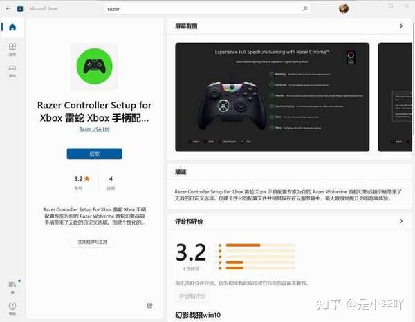 为了便于截图,软件部分我使用Windows系统进行。首先在Store搜索Razer Controller Setup,下载完成后就可以进行配置了。