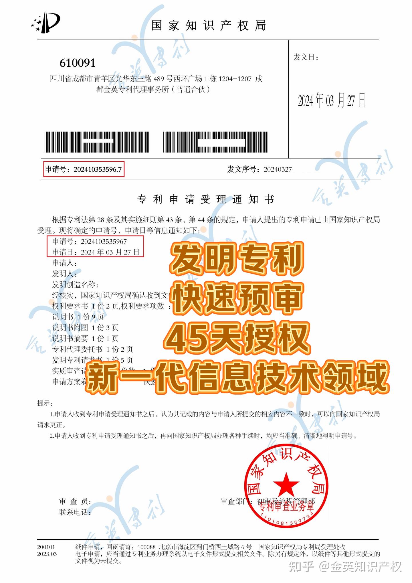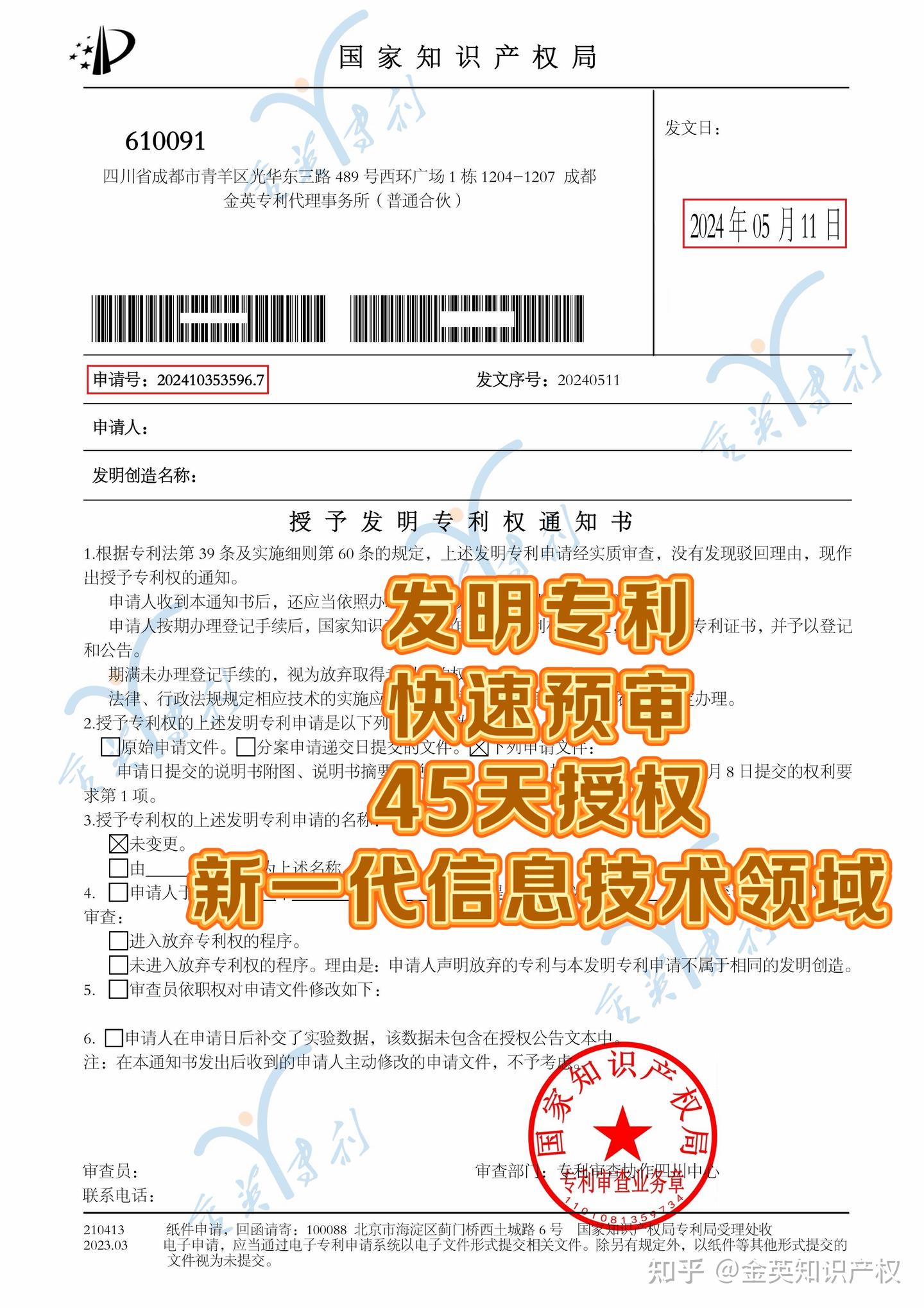 案例展示:新一代信息技术领域,45天授权(真实通知书)