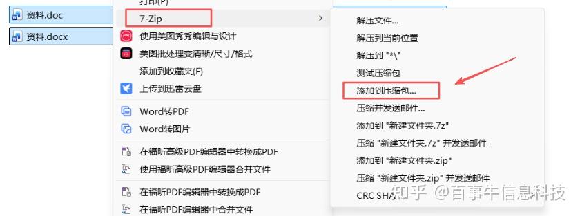 1、选中文件 → 右键,选择【7-Zip】→【添加到压缩包】