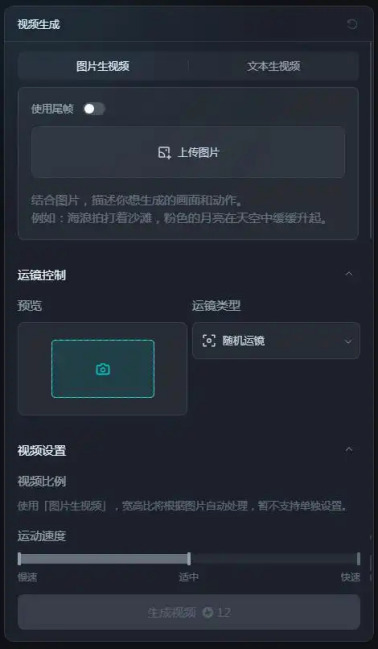 在视频生成层面,即梦AI支持三种生成模式:输入单图作为首帧,直接生成视频或配合提示词描述生成视频;输入两张图片作为首帧和尾帧,直接生成视频或配合提示词描述生成视频;或是纯文本输入希望生成的视频描述,来进行视频的生成。 [3]