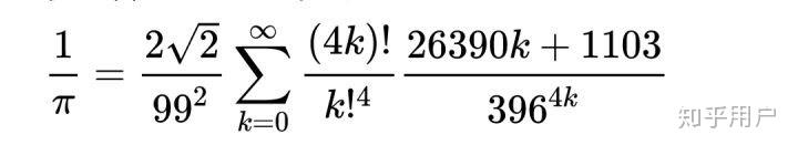 先举个栗子,拉马努金比较常见、简洁的一个圆周率公式如下图: