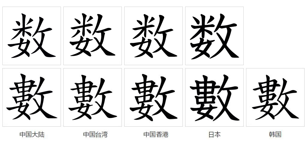 “数”通常被认为是形声字,从战国文字到楷书均为从攴、娄声。形旁“攴(pū)”为手持器械的样子。“数”本义是计算,从攴,表示数的本义与治事有关。“娄”字作声旁指示这个字的读音。在数千年的语音演变过程中,“娄”字和“数”字的读音发生了不同的变化。所以,现代“数”字的读音和古代“数”字的读音,已经大不相同了。但在造字的当初,“娄”字和“数”字的读音是相同或相近的。 [2] [14]