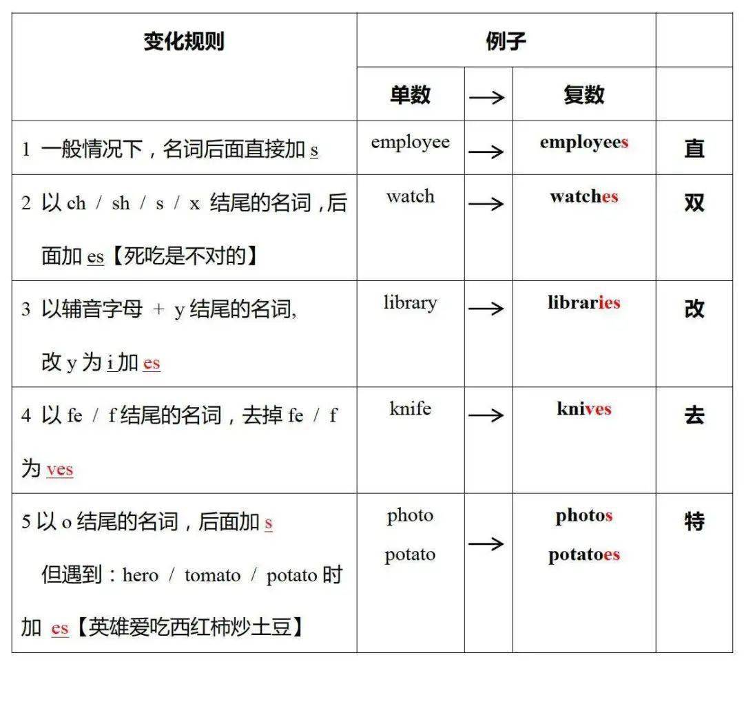 (英语名词的单复数变化举例)