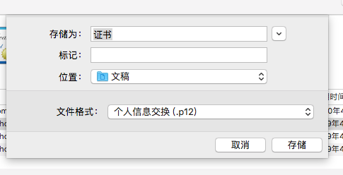 点击存储的时候 第一个弹出的要是你输入证书的密码(这个密码就是打包APP要求填的密码),第二个弹出是要输入mac系统的电脑登录密码