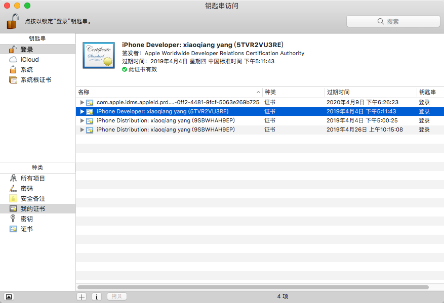 双击导入证书,导入的证书在 钥匙串访问 程序里面