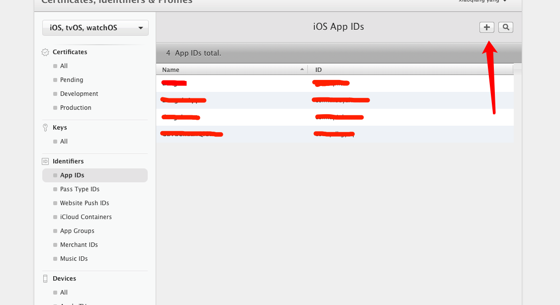 第二步主要完成 APPID的创建,cer文件和后缀.mobileprovision文件 注意这里已经获取了其中一个要使用的了!!!!
