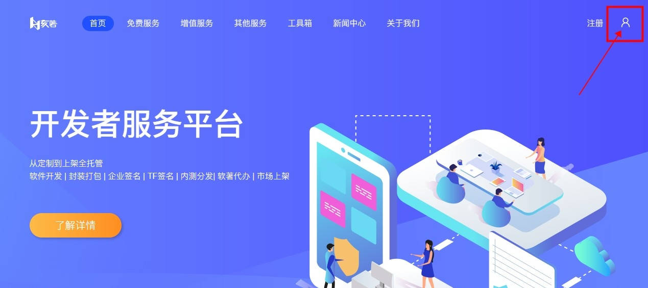 1、浏览器搜索进入官方平台,点击右上角,输入账号密码登录进入开发者后台。