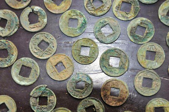 7年,王莽附会周代铸大钱之说,加铸契刀、错刀、大钱与汉代五铢钱共为四品。9年,除大钱外的货币均废除,并铸小钱与大钱通用,并严禁盗铸。10年,另造二十八种货币:黄金一品、银货二品、龟宝四品、贝货五品、钱货六品、布货十品。钱、布共为铜制,所以总称“五物、六名、二十八品”。后因人民抵制繁杂的莽币,改用汉五铢钱。在官府无法禁止的情况下,王莽又尽废诸币,改行货币、货泉两品,并于许民间铸大钱( 限期六年)。 [59]