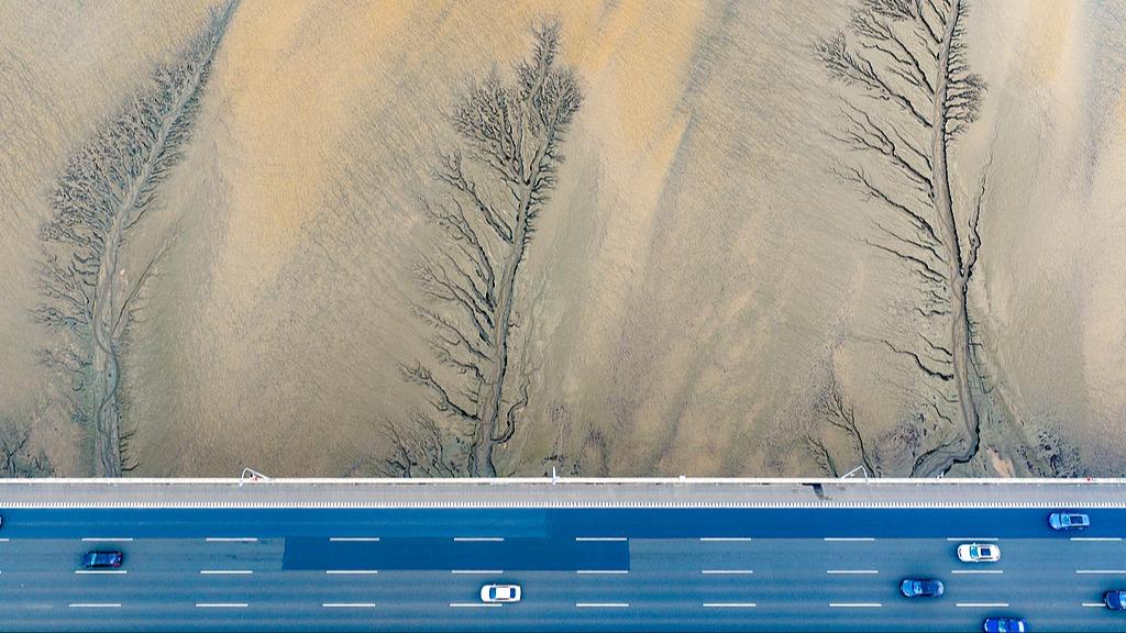 清明假期,一段网友拍摄的“浙江嘉绍大桥下潮水雕出奇幻潮汐树”的画面在网上刷屏。空中俯瞰,潮汐树如水墨画泼洒江面。桥上车流如织,桥下潮沟纵横。