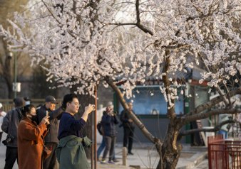 安徽亳州:杏花枝头鸟儿闹