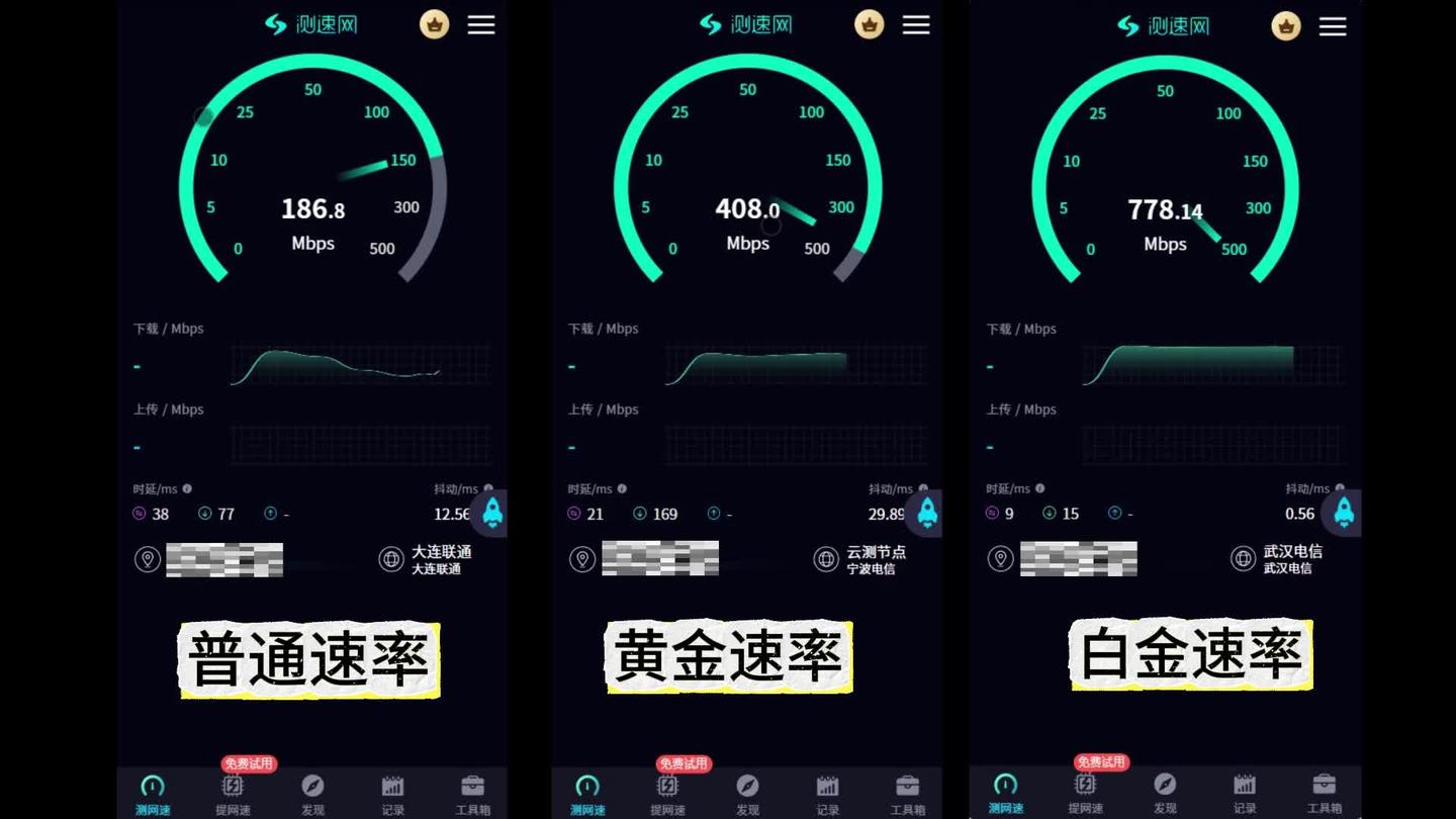 三种速率实况https://www.zhihu.com/video/1752013521796345856一般情况,标准速率已可满足日常使用,但在网络繁忙时黄金/畅享速率和白金速率可以享受优先服务保障,在挑选流量卡时可将速率作为加分项来看,没有也别担心,不影响日常使用。