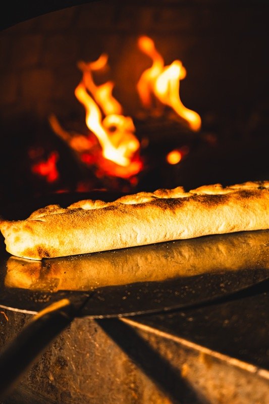 Pâte à la semoulegénéreusement garniecuit au feu de bois.