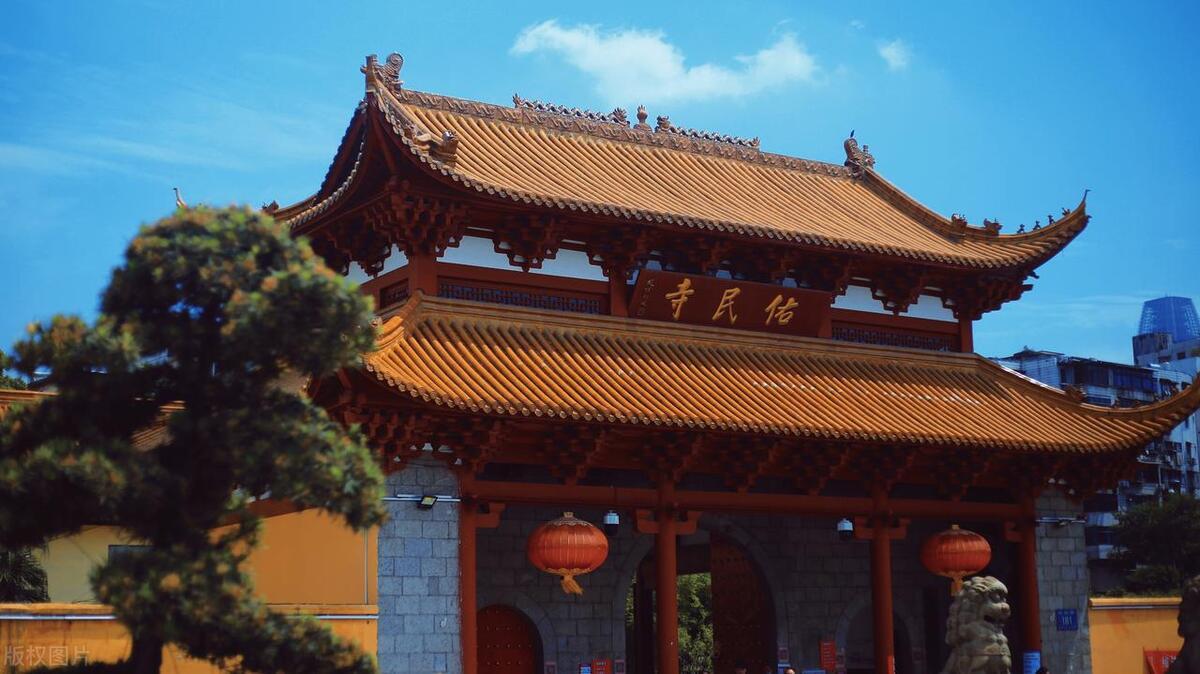 后殿有巨型铜佛像,佛像庄肃穆,较为珍贵。右侧一座四层角形的钟楼挺然护在佑民寺旁。