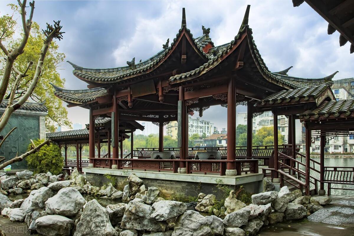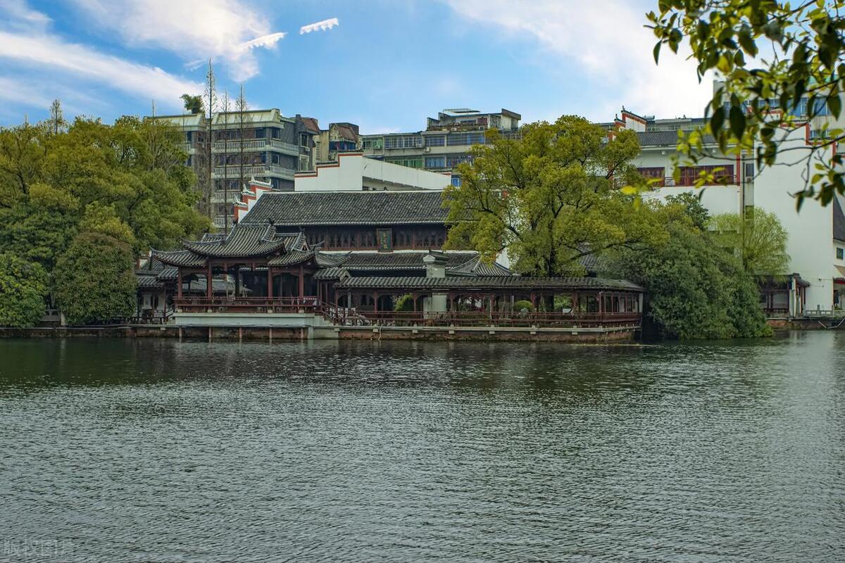 杏花楼东、南、西、三面环水,北侧经小石板桥连接与环湖路和建德观街相接。行走其间,弱柳拂风,虫鸣寂寂,置身其中令人不由不发思古之叹。