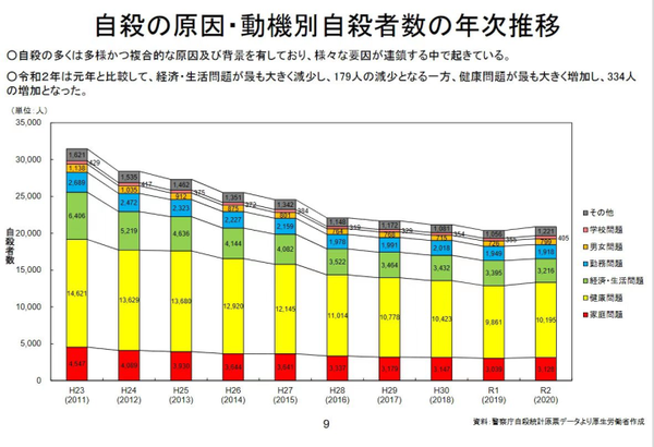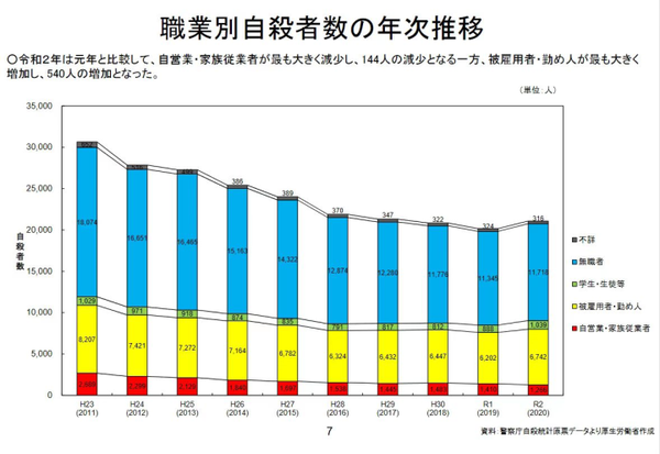 这项统计出乎意料,在日本,自杀最多的不是工作压力,在有工作时自杀的,而是辞职的人自杀的。