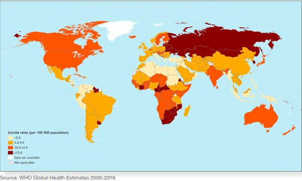 可以来看下自杀率的统计数据,很说明问题: