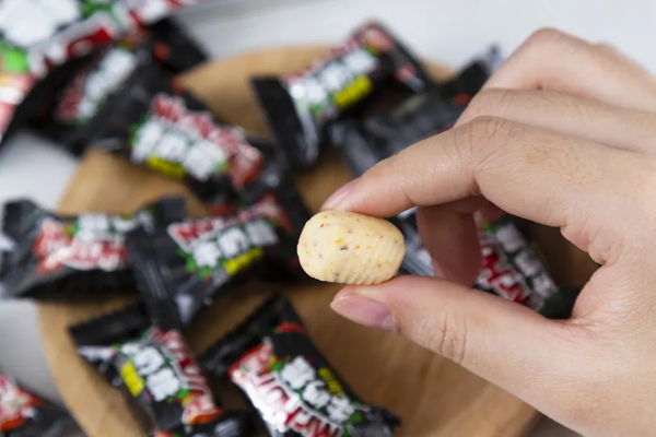 吃进嘴里,首先是一股熟悉的旺仔奶糖味儿。