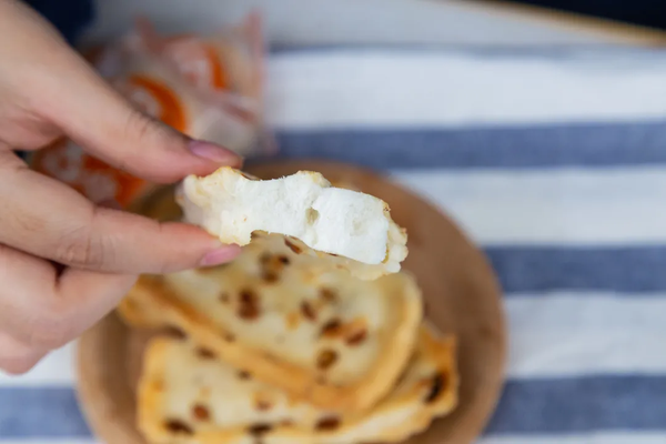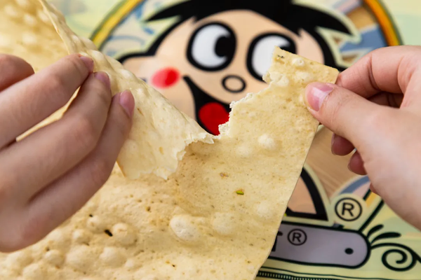 看上去以为是干脆的,像锅巴那样~但拿起来才发现它是软韧的。