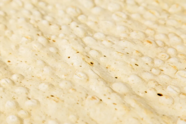拆开来看,里面的鱼烧也是一大块。乍一看有点像炸腐竹。面对上面大片的泡泡,强迫症完全忍不住手痒,马上就想去戳。
