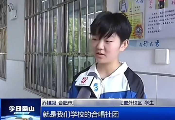 初中时期的乔镘凝,曾登上过合肥市蜀山区的当地新闻,在新闻中她接受了采访,当时穿了一件蓝白色外套。