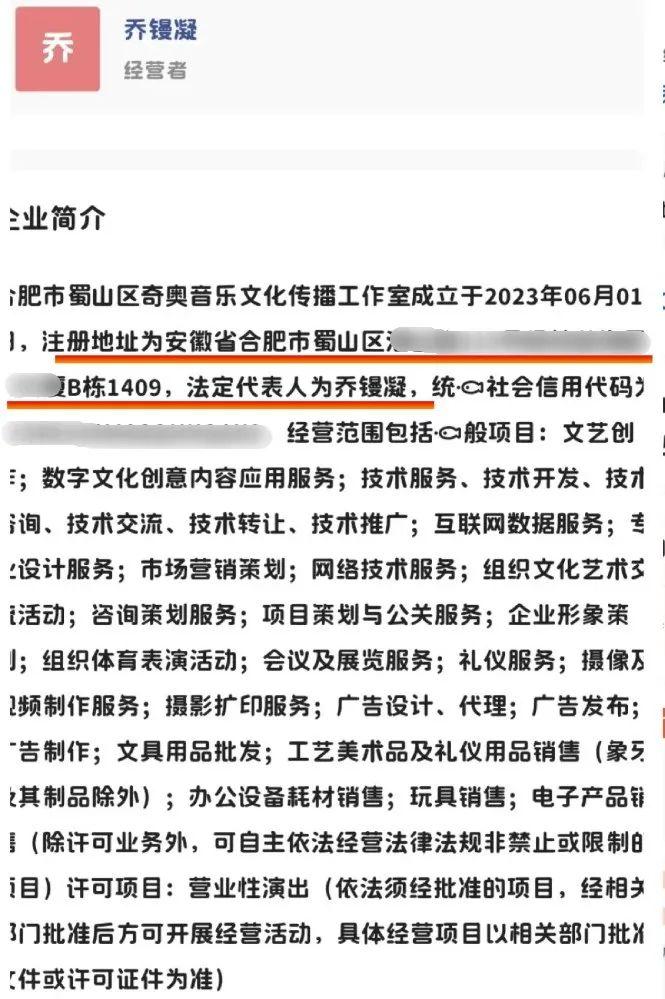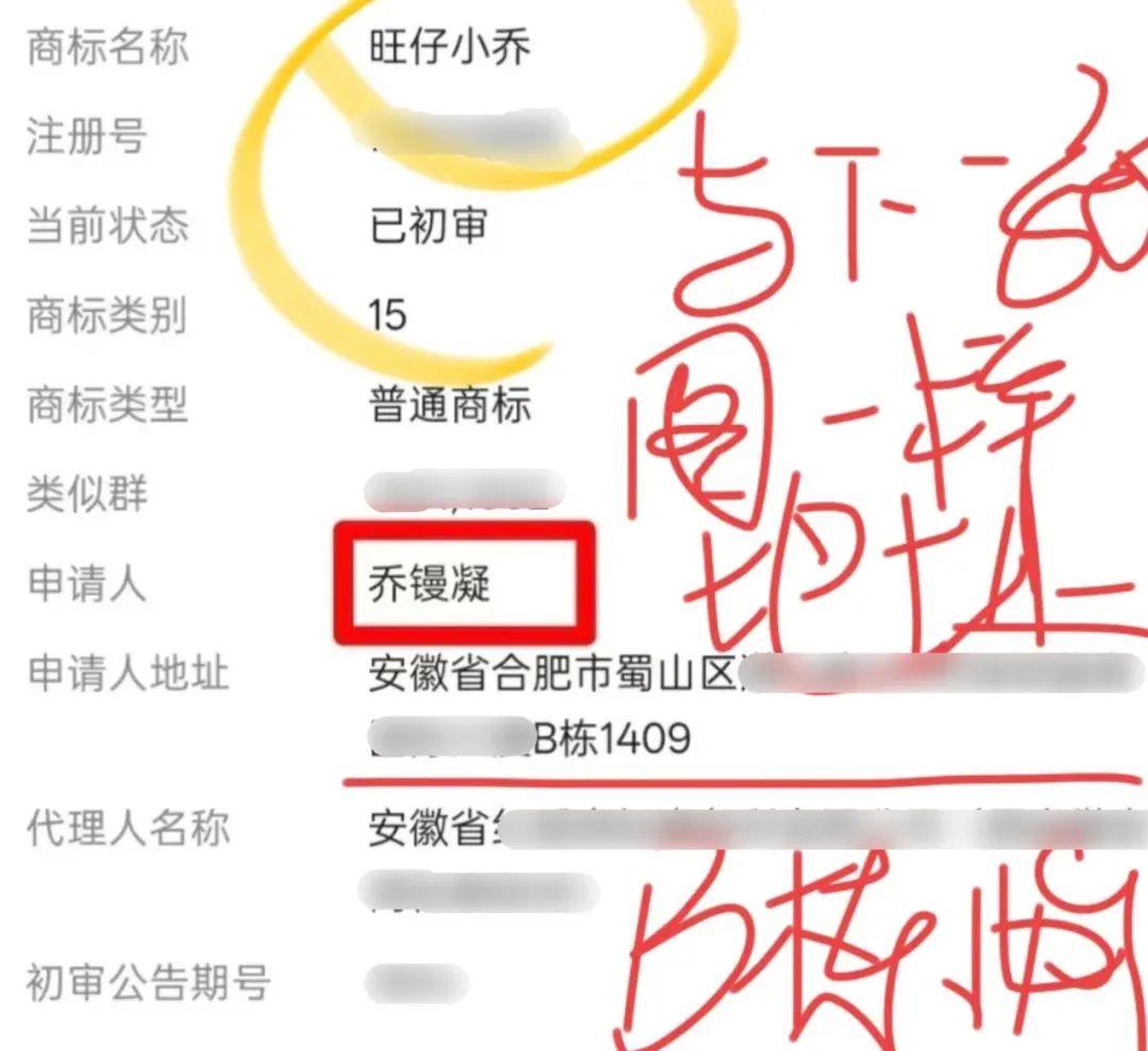 乔镘凝与乔湘红的住址都是合肥市蜀山区,乔湘红还曾担任安徽镘凝商贸的高管,且乔镘凝曾注册的合肥市蜀山区奇奥音乐文化传播工作室地址,与旺仔小乔申请商标时用的地址都是同一个。