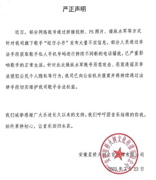 在声明中,旺仔小乔既没承认也没否认乔镘凝就是她,而是模棱两可将这件事定性为侵犯个人隐私。