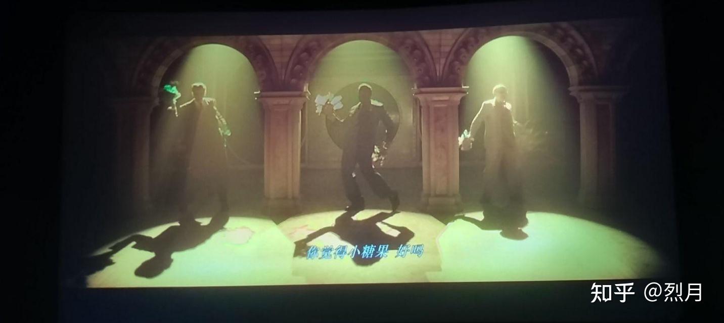 另外,提到黑人资本家,这电影搞成歌舞片我是不反对,但为什么他们的歌舞都是那么的丑陋,还不整齐?尤其是黑人资本家地下室忽悠警察那一段,那画面已经不能只用辣眼睛来形容,简直是要戳瞎我的水平,因为太过震撼我还拍了个照,来大家一起欣赏下↓