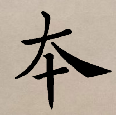 树木的根在下部,生长、繁茂要靠根部吸收养分。本字就用来指事物的基础或主体。《论语·学而》:“君子务本,本立而道生。”本指基础、根本。农业是经济的基础,故又特指农业。《管子·国蓄》:“强本趣耕。”本,指务农。根深叶茂,根朽枝枯。草木的根部是草木兴盛或衰败的根据。本字就产生了根据、依据、按照等意义。中国历来把书籍、图画、碑帖称为本,就是有把它看作为人、行事的依据的意思。书籍、图画、碑帖有版本的不同,故有刻本、抄本、临本、拓本、善本、珍本等区别。封建时代臣下奏事的文书也叫本,在封建社会给皇帝上书言事,是一件很严肃的事情,不能稍有疏忽,一定要“酌古御今”,所言事、理,都必须有根有据。故这种文书也称之为“本”。