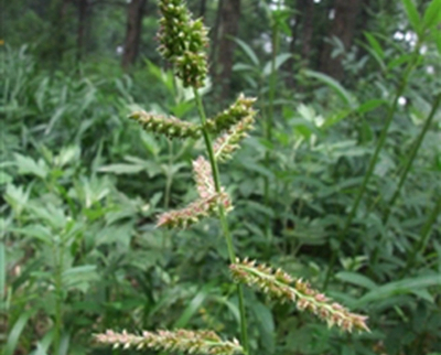 短芒稗(Echinochloa crusgalli (L.) P. Beauv. var.breviseta (Doell) Neilr.)该种与稗主要区别为植株高30~70厘米;叶片长8~15厘米,宽4~6毫米。圆锥花序较狭窄,长8~10厘米;小穗卵形,绿色,长约3毫米,脉上疏被短硬毛,顶端具小尖头或具短芒,芒长通常不超过0.5厘米。分布于中国台湾、广东;广布于马来西亚、印度、斯里兰卡和热带非洲地区。生于草地上。