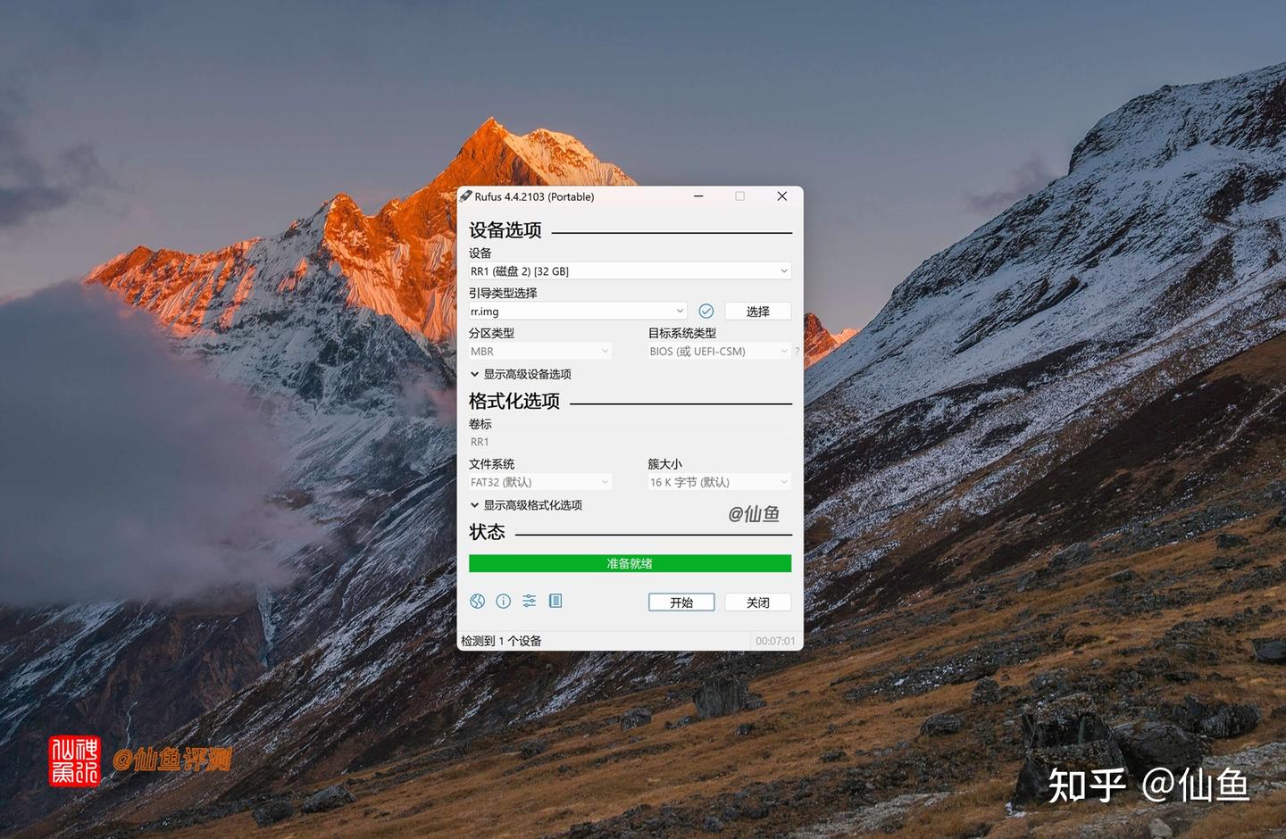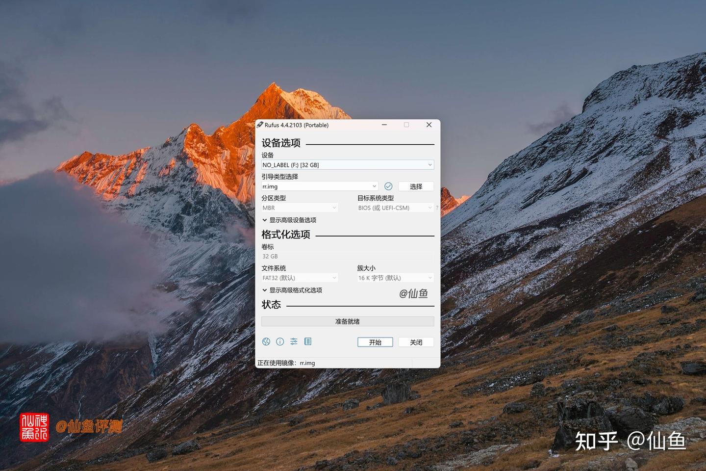 在开始按钮前,务必要确认U盘是否选择准确,因为接来会先格式化U盘: