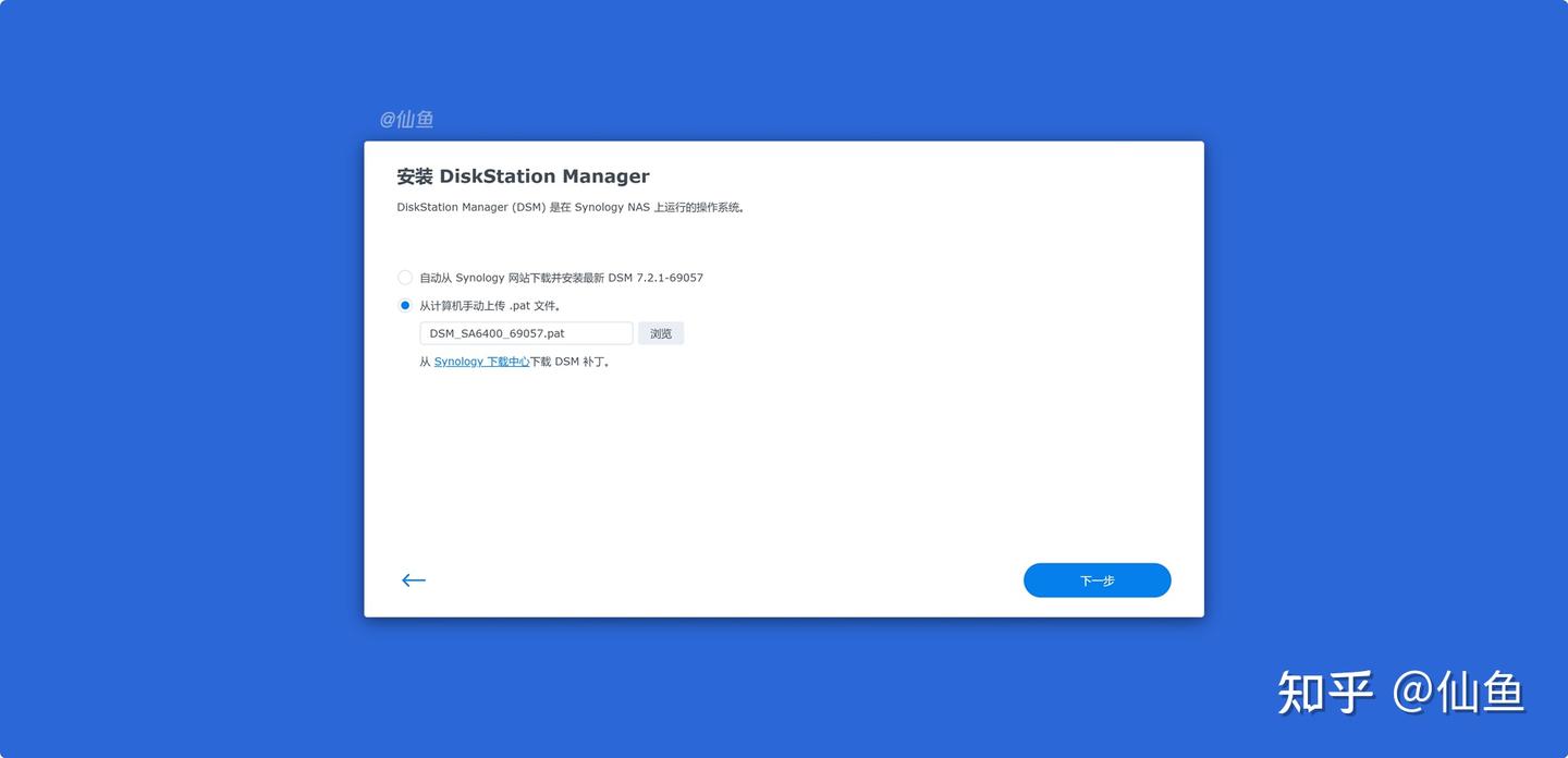 安装DSM7.2.1固件时,推荐手动上传pat文件:
