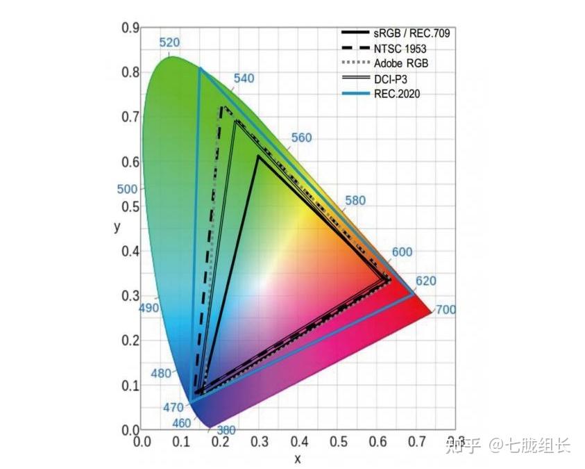 从下图可见,不同的色域标准,其实代表的色彩范围也是不同的,但一般用户选择显示器的时候,不管是那种色域标准,当然是越高越好了