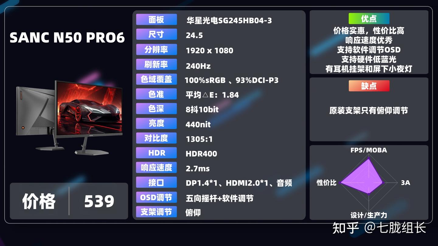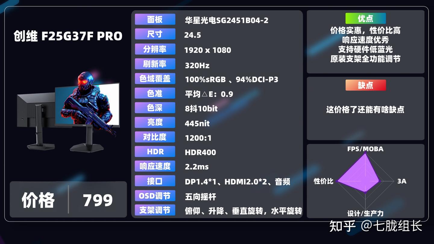 这块屏就相当适合电脑配置不错 追求高画质高刷新的兄弟们了,缺点部分 主要是体现在严肃设计使用场景中,因为它sRGB色域缩限表现一般,且亮度均匀性不够优秀,所以不足矣胜任严肃设计类工作,也可以说银河V7就是游戏方向的调校,日常+游戏使用的话,银河V7的表现还是非常顶的,想在千元出头上一台2K超高刷的话,这个目前是首选之一