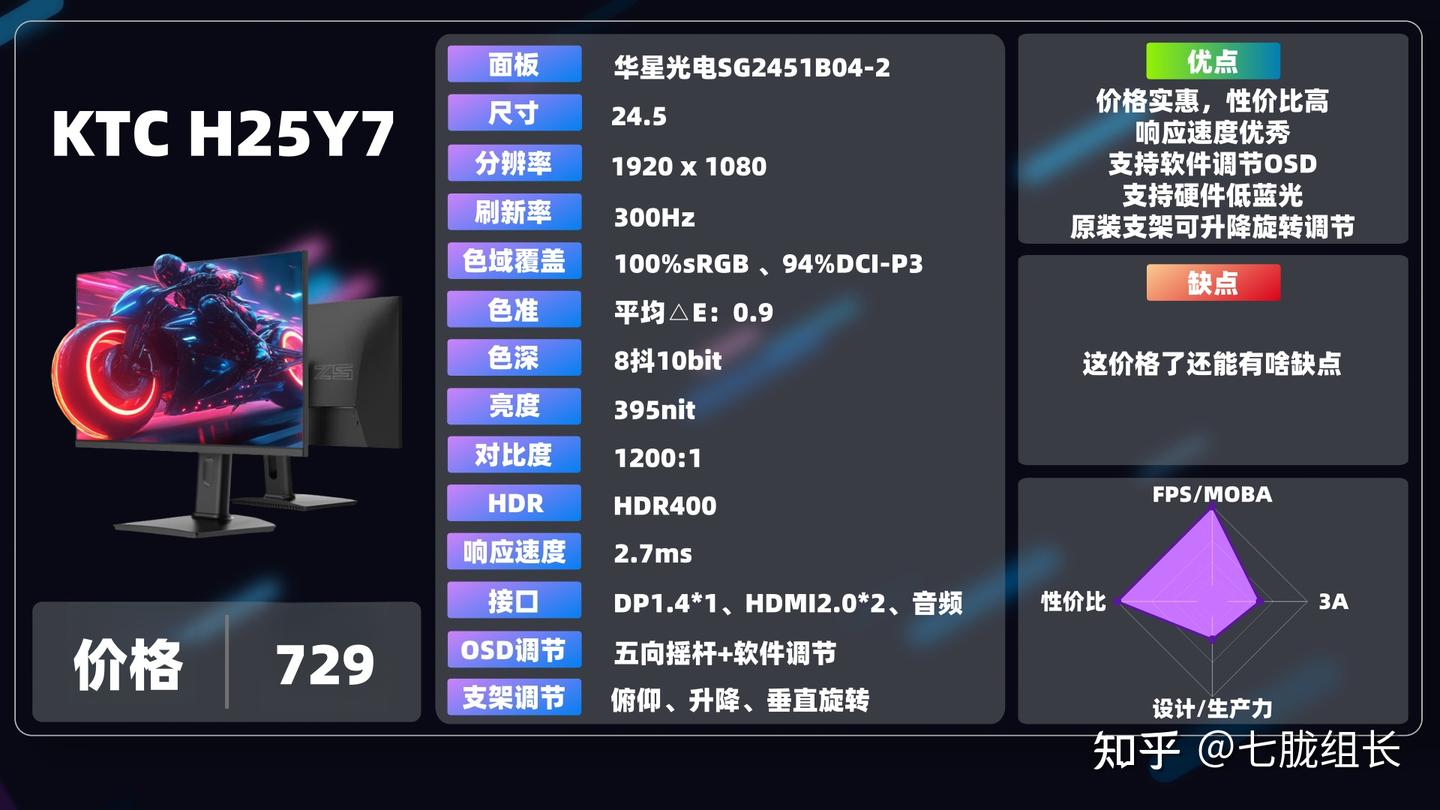 如果你觉得240 260Hz还是差点意思,你想要更加竞技0.0,你可以看看KTC搭载原生300Hz高刷面板的新品,KTC H25Y7,面板使用华星光电 SG2451B04-2,原生300Hz,来到这个刷新率,那可谓是相当竞技了,游戏素质自然不必说,顶级T1水准,并且色域覆盖和对比度表现也都很不错,国补价679的价格 买1K 300Hz高刷,原装支架还有旋转升降调节,性价比直接拉满