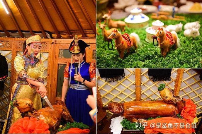 午餐品尝民族特色餐 ——烤羊腿、手扒羊肉,下午观看 “蒙古男儿三艺”中的赛马及摔跤表演。