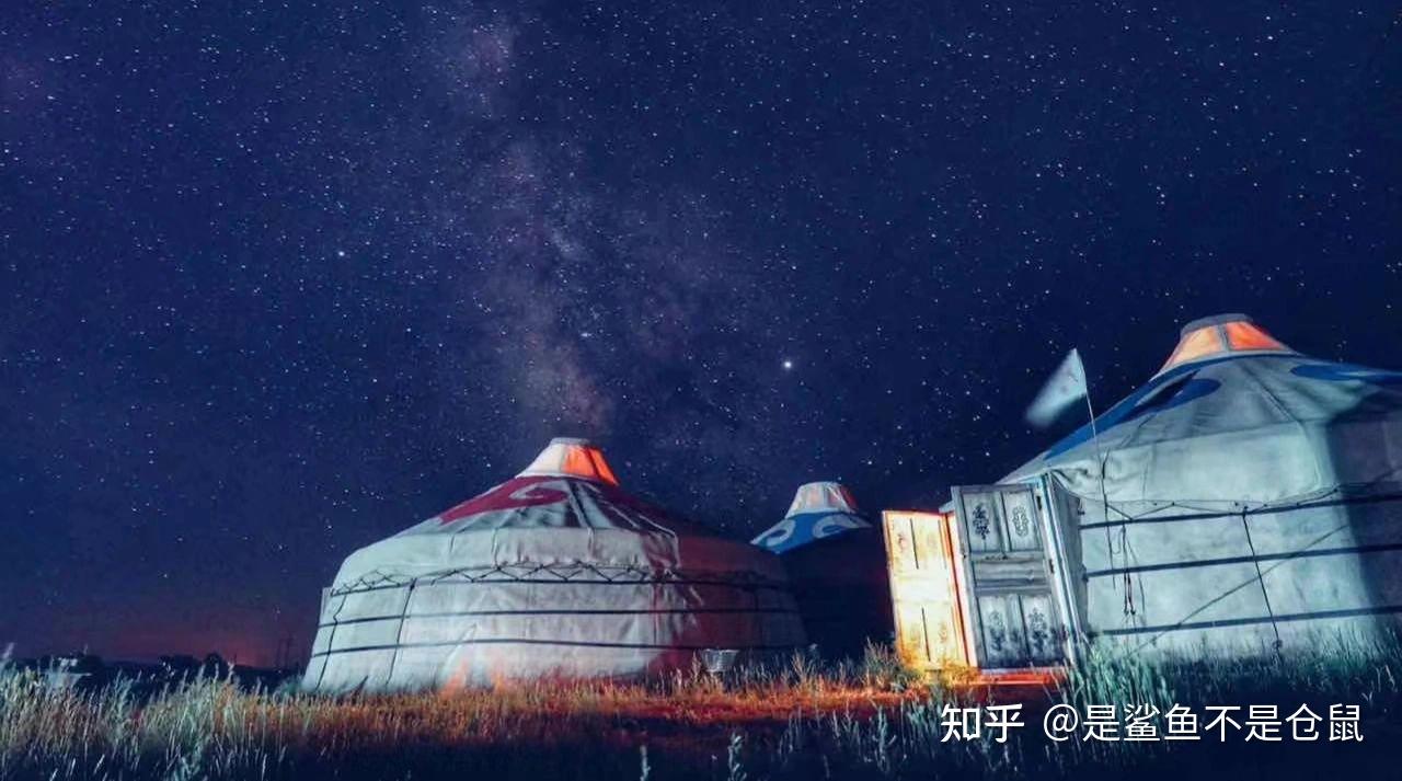 夜宿草原蒙古包,星空下入眠,感受草原宁静的夜。