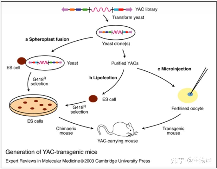 o 常用的技术方法包括原核显微注射法、逆转录病毒载体法、精子介导法和酵母人工染色体法。