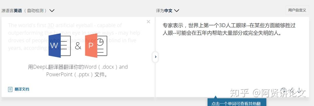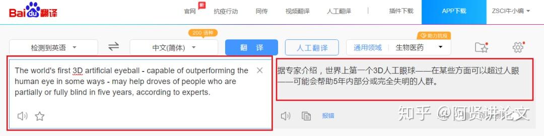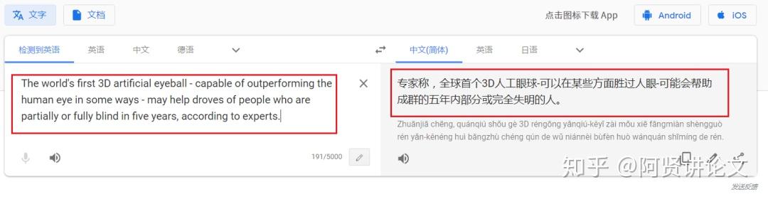 一起看看不同翻译工具对同一段话的翻译结果吧~如:The world's first 3D artificial eyeball - capable of outperforming the human eye in some ways - may help droves of people who are partially or fully blind in five yearsaccording to experts.译文:专家称,世界首款3D人造眼球有望在五年内帮助许多部分或完全失明的人重见光明,这种人造眼球在某些方面比人眼还要好。