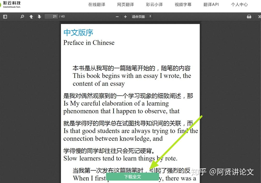 彩云小译网页版可以在线输入文字翻译,还支持上传文件(docx或者pdf)翻译。不过想要查看翻译好的全文需要下载翻译好的文件,而且有免费的次数限制。