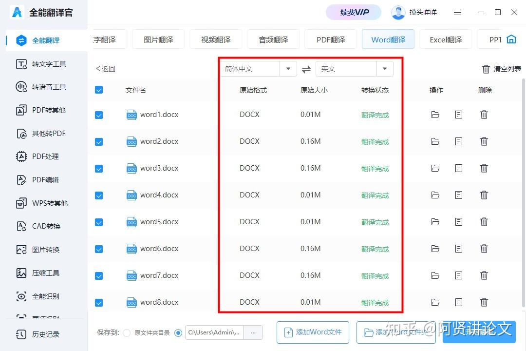 02、选择翻译语言,点击添加文件或文件夹,最多可添加10个文件,文件大小<50M,然后点击“开始翻译”等待处理;