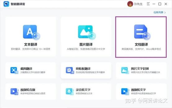 01、打开智能翻译官软件,选择首页界面“文档翻译”功能。