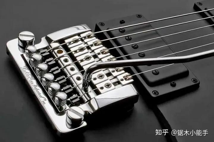 单摇琴桥:可以单向摇动,通过下压摇把让琴桥的角度发生改变,从而改变音高,快速晃动就会产生颤音的效果。