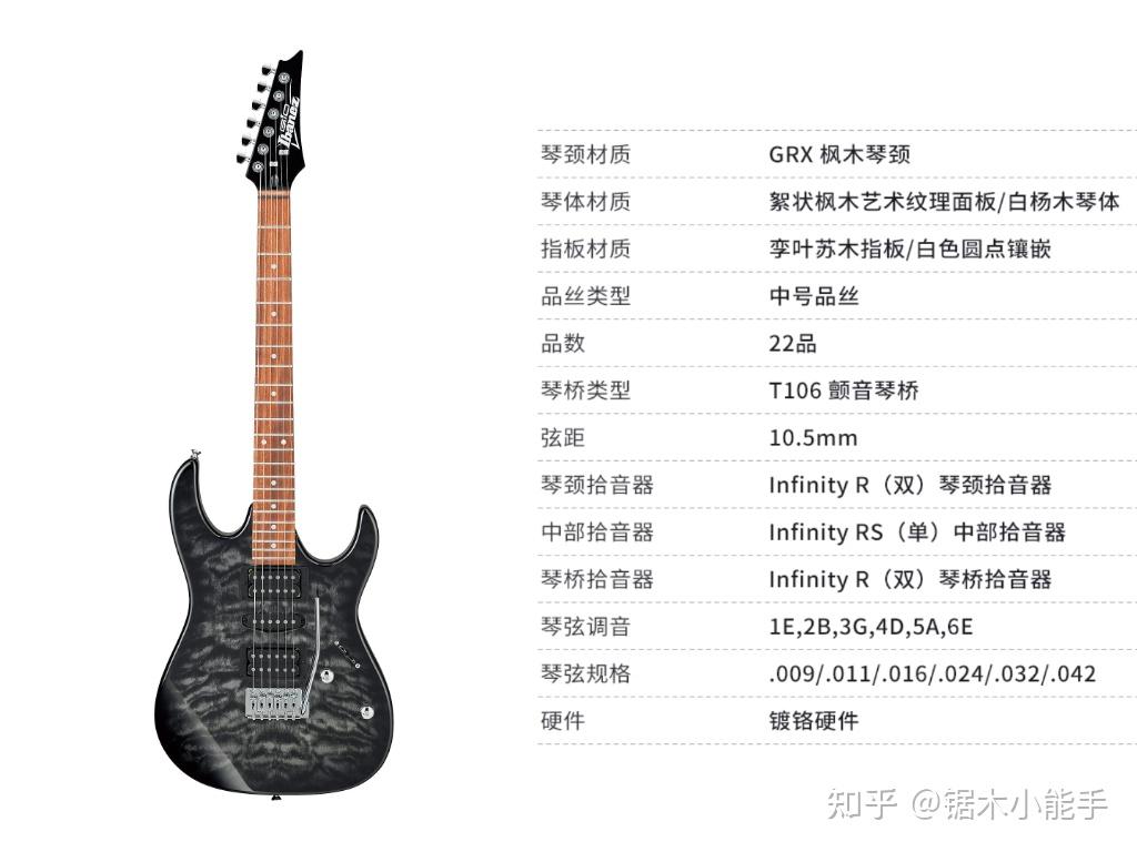 GRX70QA这款单摇琴的指板采用了比较少见的栾叶苏木,硬度高,而且红颜色很美观,非常耐磨损。琴身是枫木材质,比较重。双单双拾音器,适合偏重点的音乐风格,弦距适中,中部拾音器处理的较好,不容易打品,虽然我认为新手选单单双比较稳妥,但你要是实在喜欢这款,做好思想准备也可以买,足够入门使用。