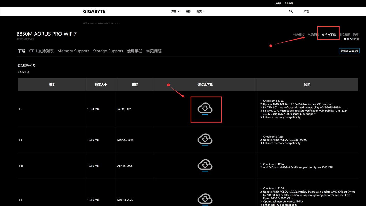 不管是哪种调试,到手一定要先更新BIOS,准备个U盘,去技嘉官网搜索你的主板型号,去支持与下载中,下载BIOS固件并解压缩到U盘上。